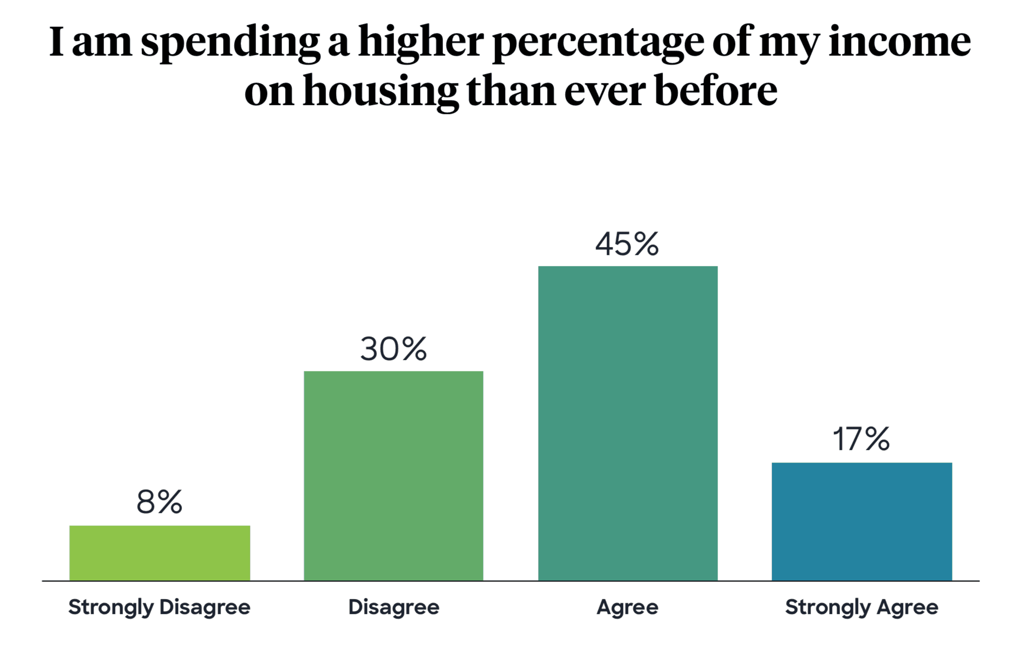 But 64 percent of Boston-area homeowners say high housing costs make it difficult to achieve other financial goals, whether that’s paying off debt, starting a small business, or any number of goals. Nearly as many (63 percent) don’t feel like they have good options for turning the equity in their home into cash.